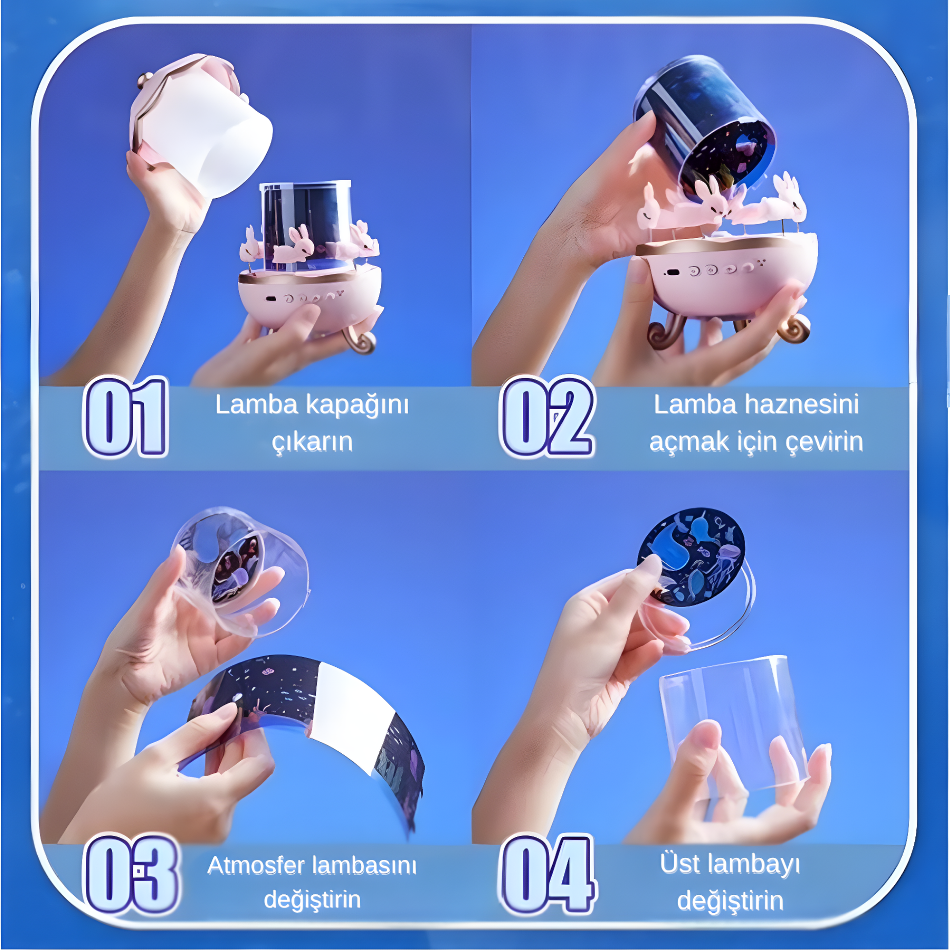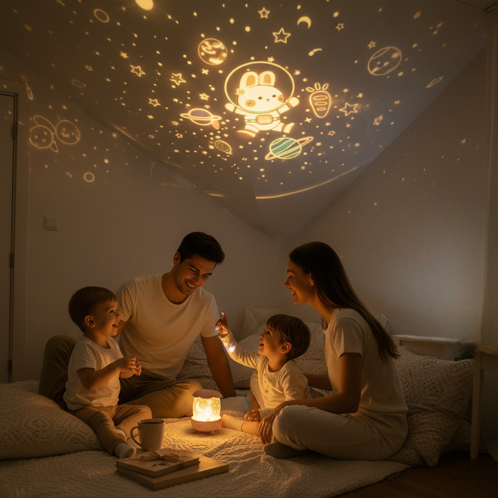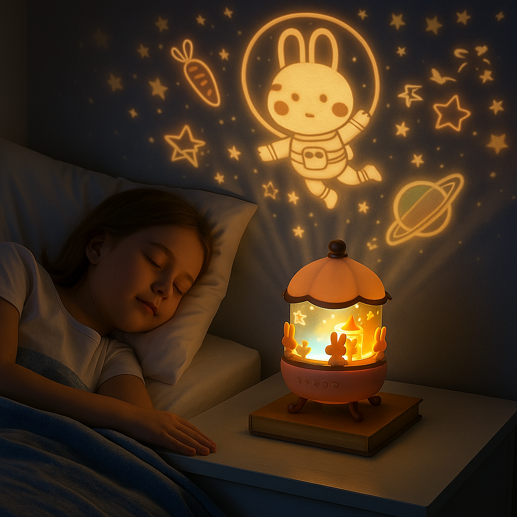 Işık döner, gölgeler canlanır, ve odan sessizce bir masala dönüşür. ✨